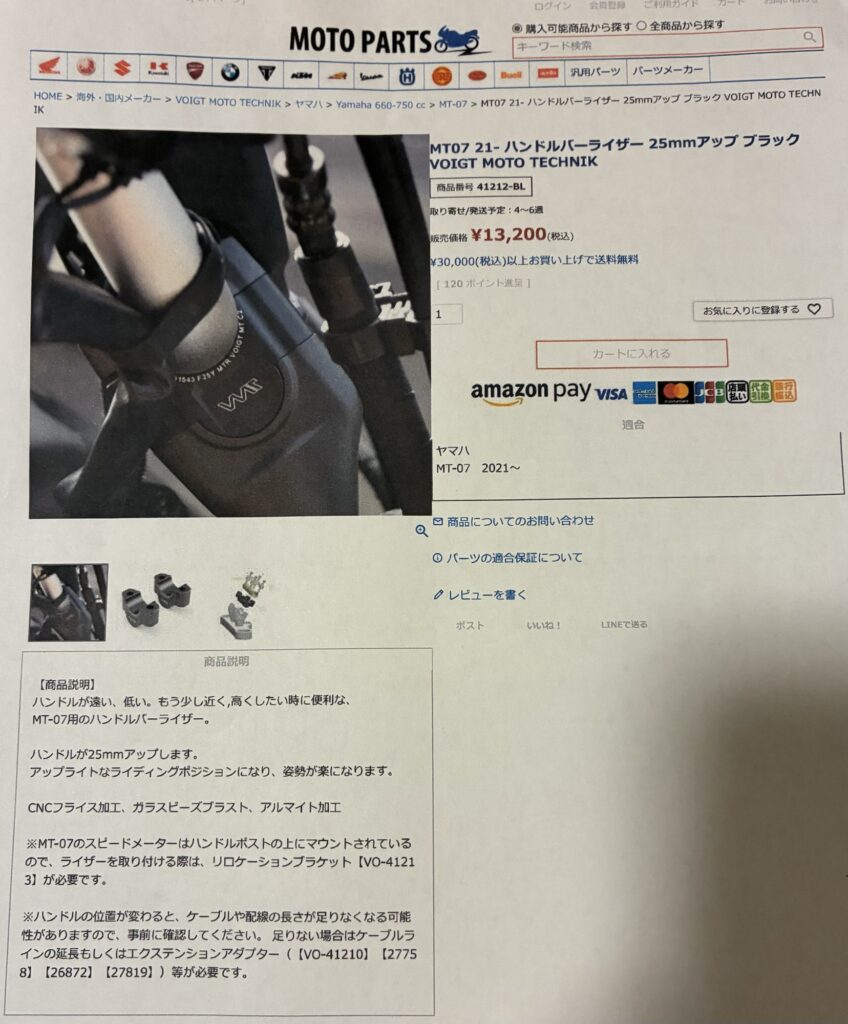 そこで今回は、愛車のヤマハMT-07(2022年式)にハンドルアップ化を施し、より快適なライディングポジションを目指そうとしました。