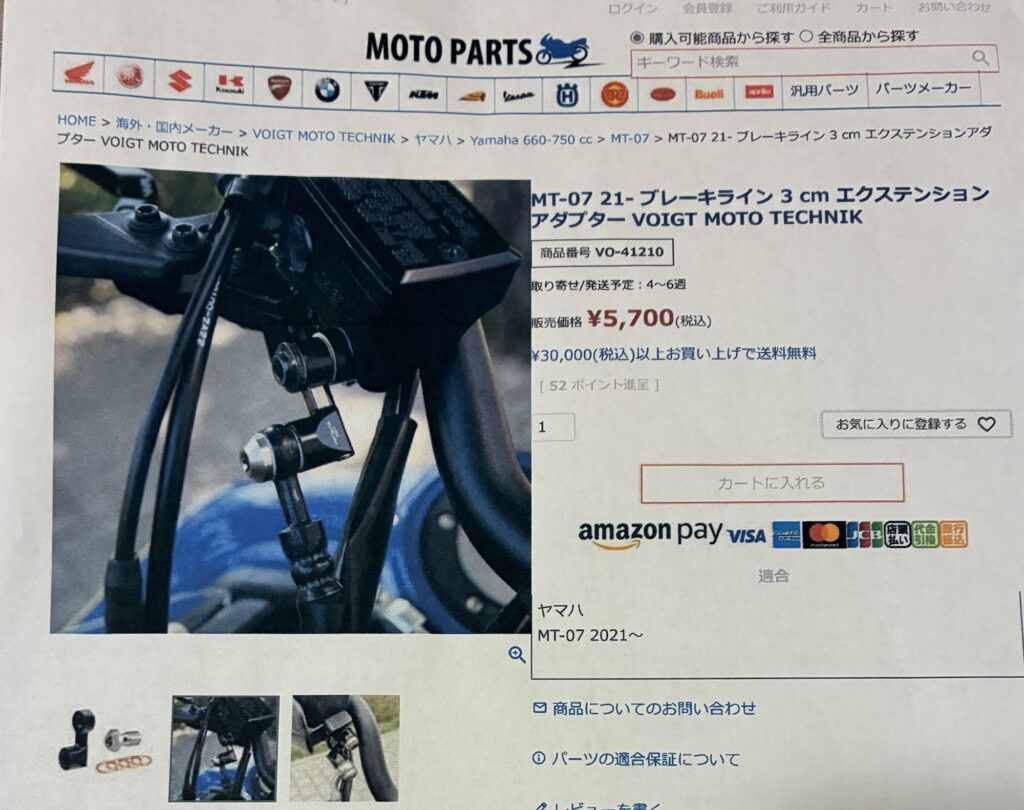 そこで、いつもお世話になっているバイク屋さんと相談し、下記のパーツを紹介してもらいました。