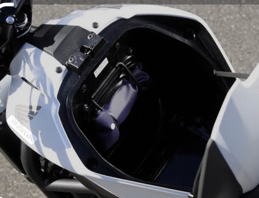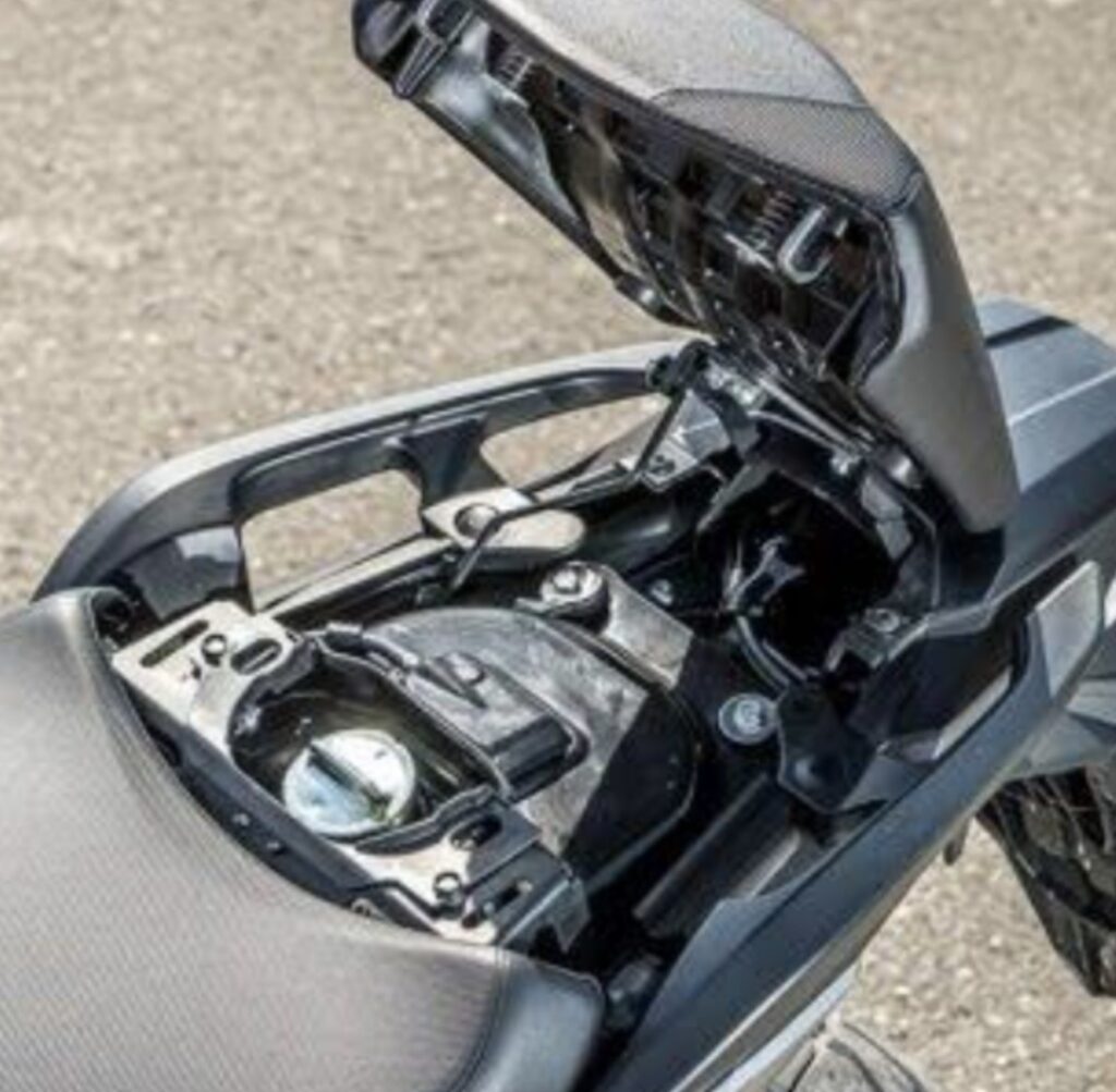 実際のガソリンタンクはタンデムシート付近にあり、まるでスクーターのように、ヘルメットを収納できる構造なのです。